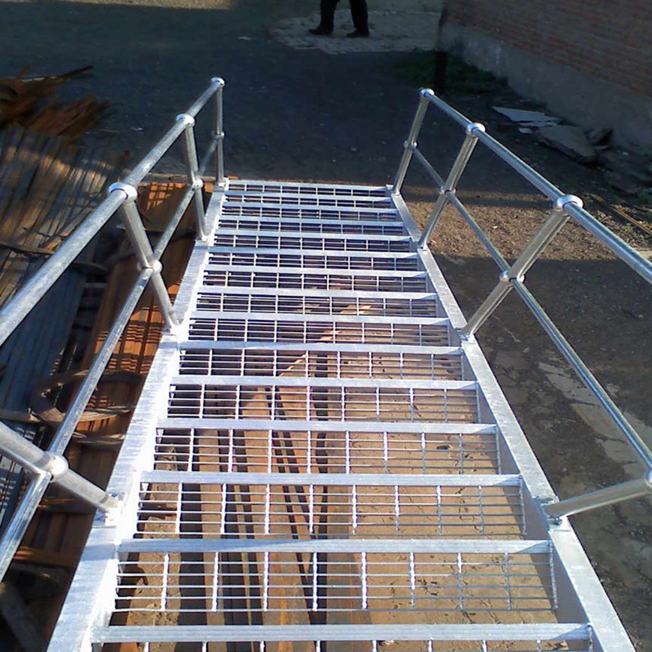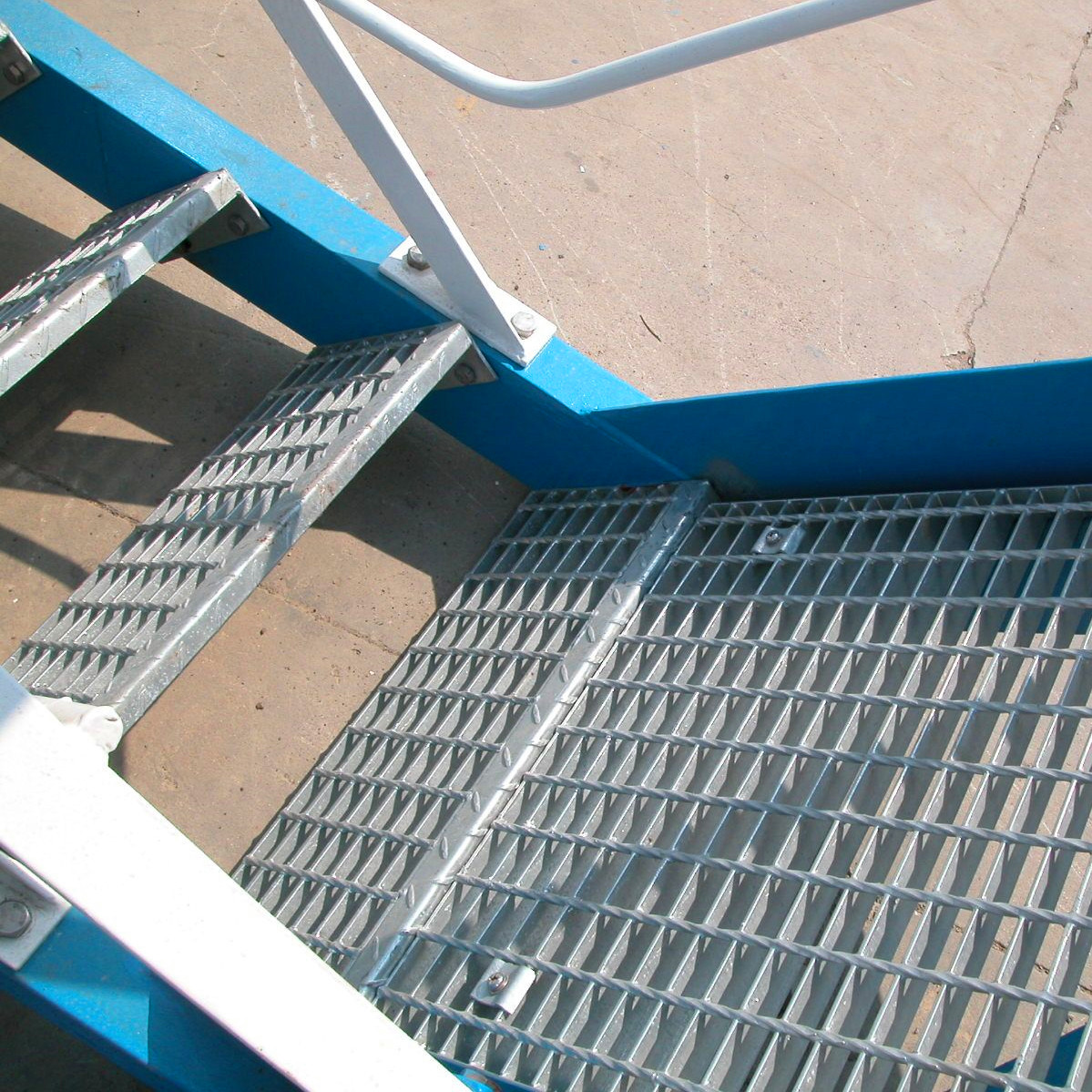 鋼梯踏步板一般分為焊接固定和螺栓固定兩種連接方式,焊接固定如上圖T1踏步板、T3踏步板,T1和T3的區別在于T1沒有前花紋護板,這種焊接固定的方式其優點在于安裝簡單、經濟耐用,缺點是不宜拆卸回收利用。而螺栓固定的如上圖T2和T4區別同樣是T2沒有前花紋護板,螺栓固定的鋼梯踏步板和T1或T3相比較在于螺栓固定的鋼格板需要在兩側各增加一塊側板,側板經過開孔處理來連接防盜螺栓。T2和T4便于拆卸、可以回收利用。客戶可按需要定制鋼梯踏步板的長度與寬度來配合鋼梯的使用。